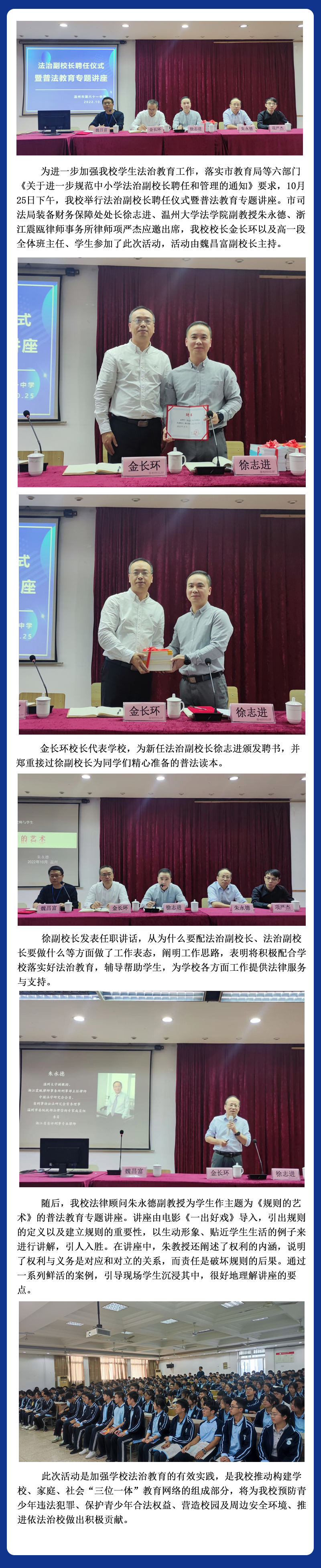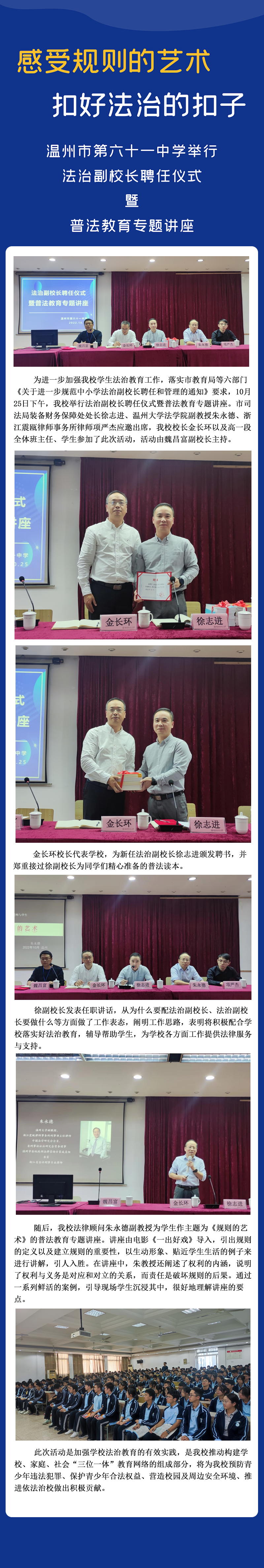 感受规则的艺术,扣好法治的扣子——温六十一中举行法治副校长聘任仪式暨普法教育专题讲座