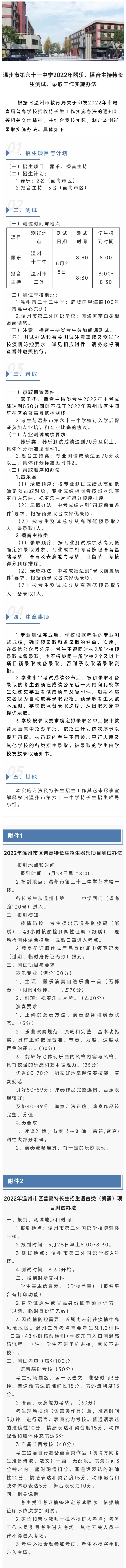 温州市第六十一中学2022年器乐、播音主持特长生测试、录取工作实施办法